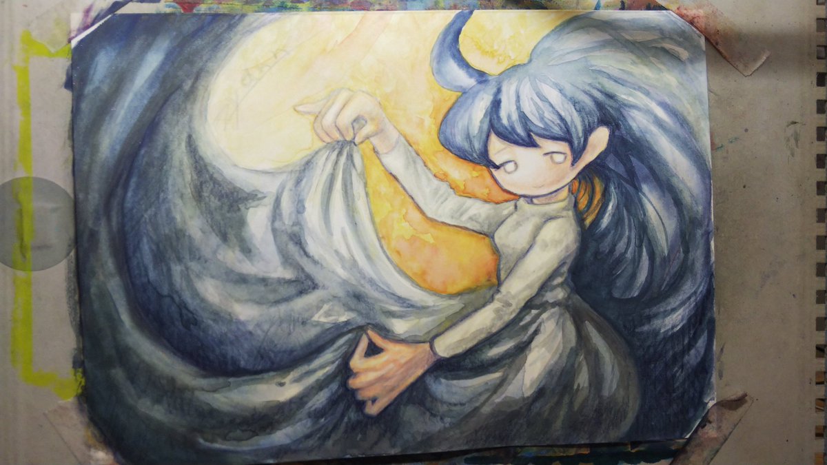 主に自作絵の具を使って描きました #絵 #イラスト #アナログ #水彩