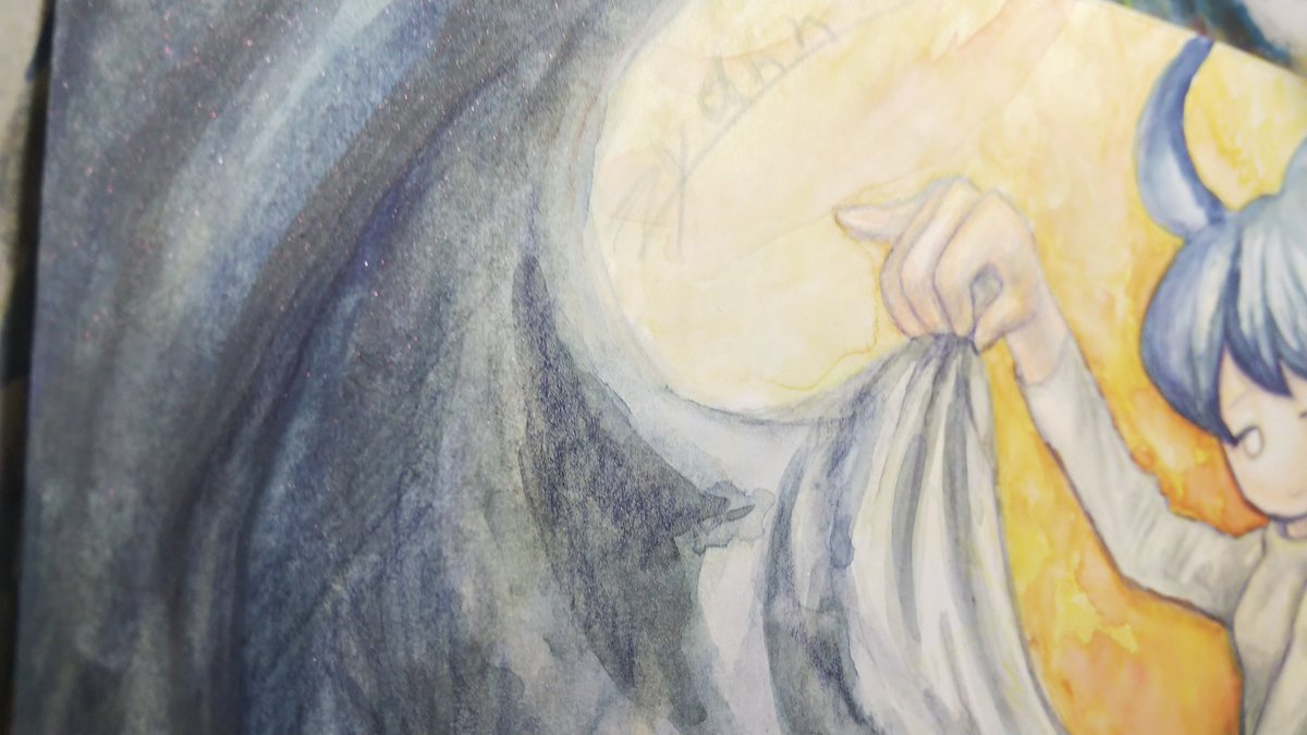 6 28 黒地を残しながらキラキラを乗せたらどうなるかの実験絵 #絵 #イラスト #アナログ #水彩 20/12/28 10:56