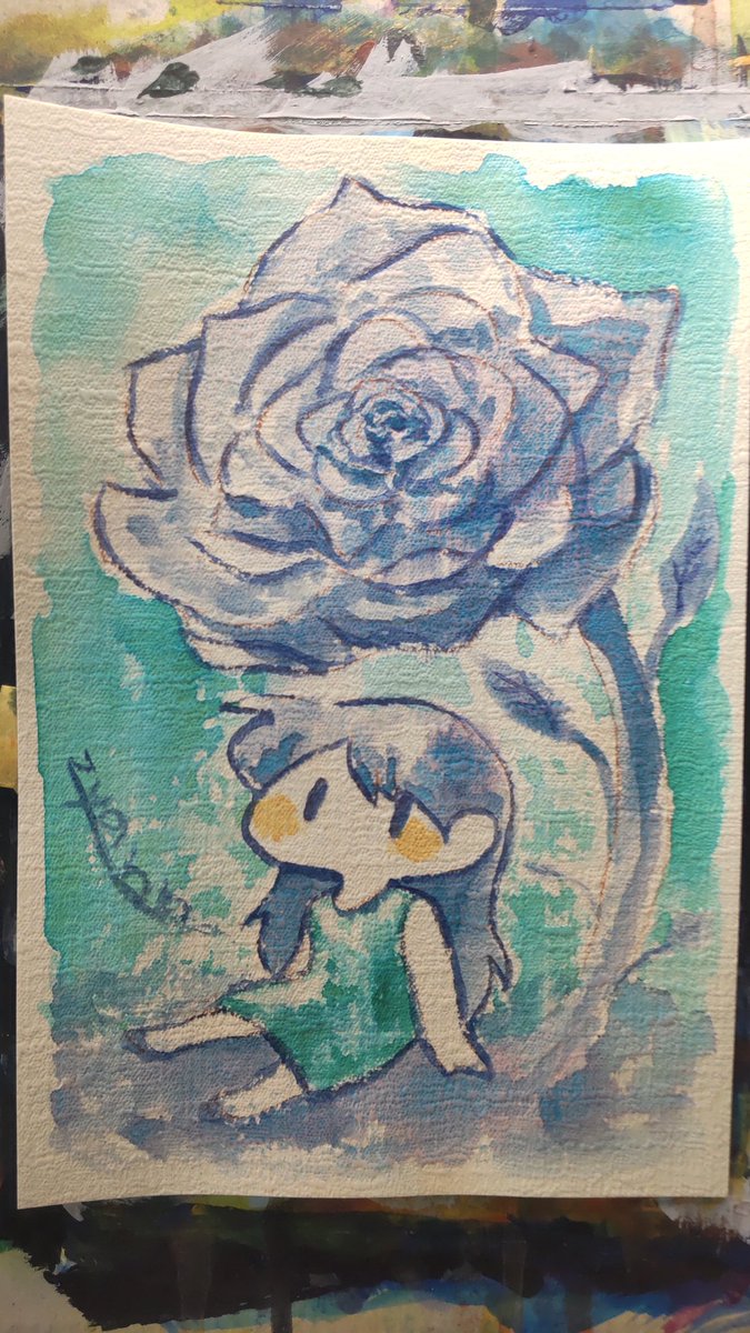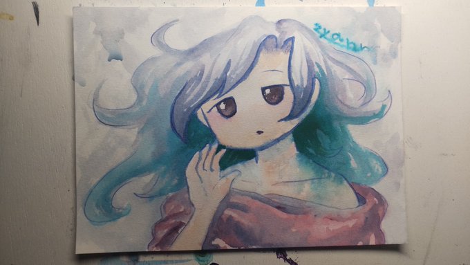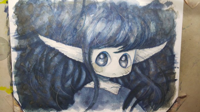青地の上から透明水彩で描くということをしました #絵 #イラスト #アナログ #透明水彩