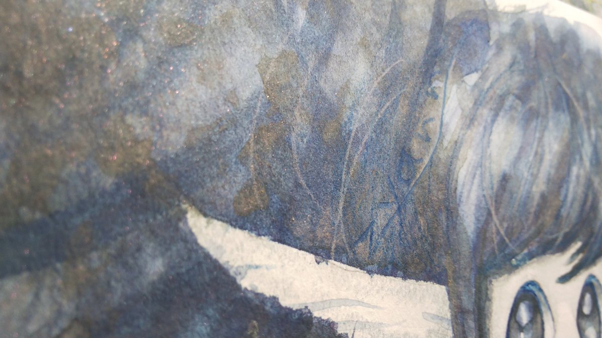 黒地を残しながらキラキラを乗せたらどうなるかの実験絵 #絵 #イラスト #アナログ #水彩