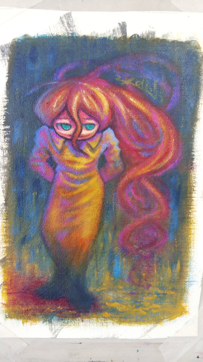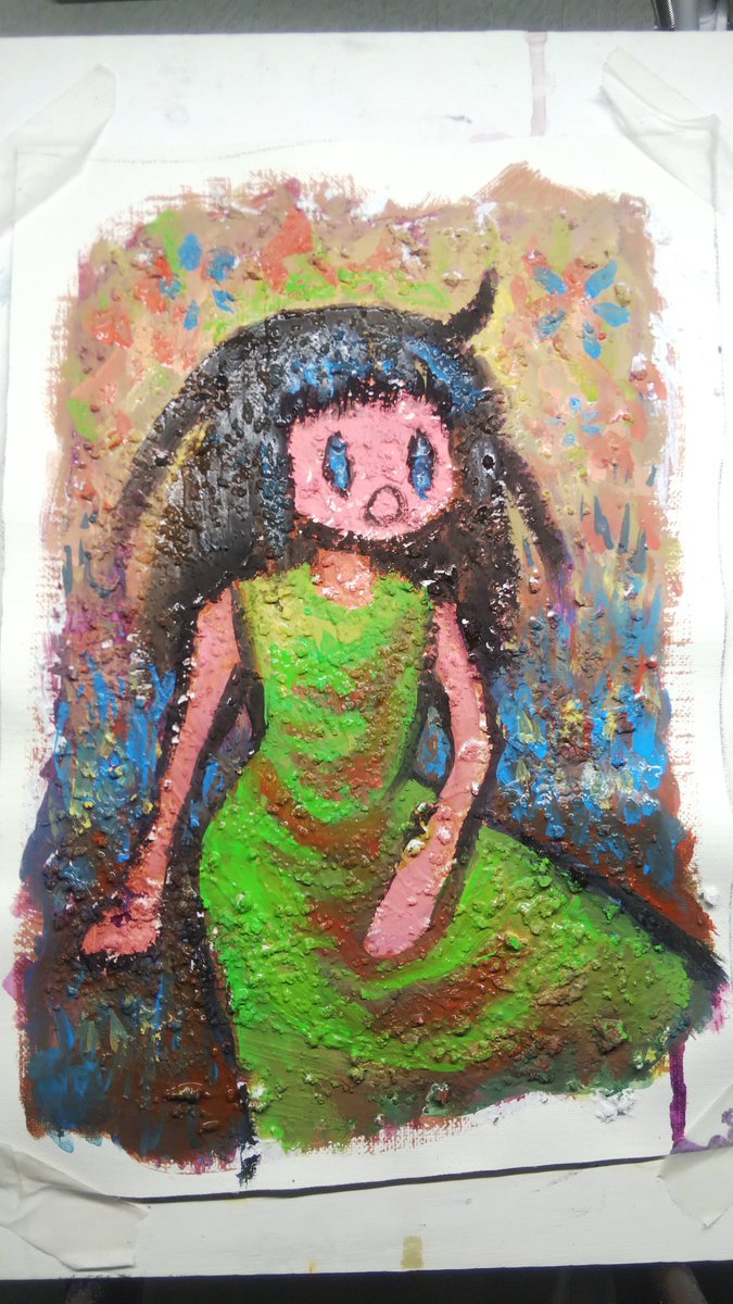 カサカサ下地は描いてて楽しい #イラスト #絵 #アナログ #アクリルガッシュ