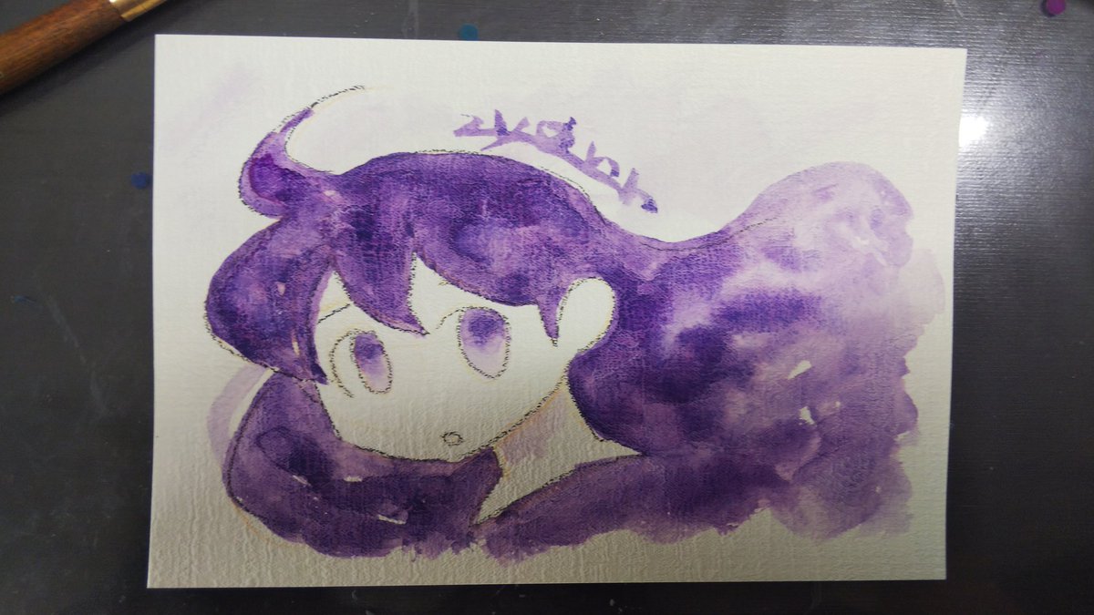 スーパーヴィジョンで複雑に色を混ぜるとこうなります。 サラっと単色で塗った方が良いですね。 #絵 #イラスト #アナログ #スーパーヴィジョン #水彩