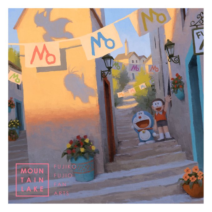 C92で頒布予定の藤子不二雄のファンアート集「MOUNTAIN LAKE」の表紙になります。 #C92 #コミックマーケット92 #コミケ92 #夏コミ #藤子不二雄 #ドラえもん #Illustration