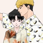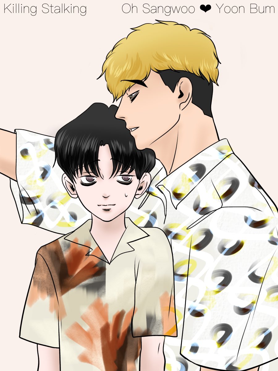 柄シャツを強要するサンウさんとそれに付き合うウジンくんを描きました🌴상우범이라면 프린트 셔츠도 잘 어울릴 것 같아요☺️ @kooo_gi #KillingStalking #킬링스토킹 #キリングストーキング