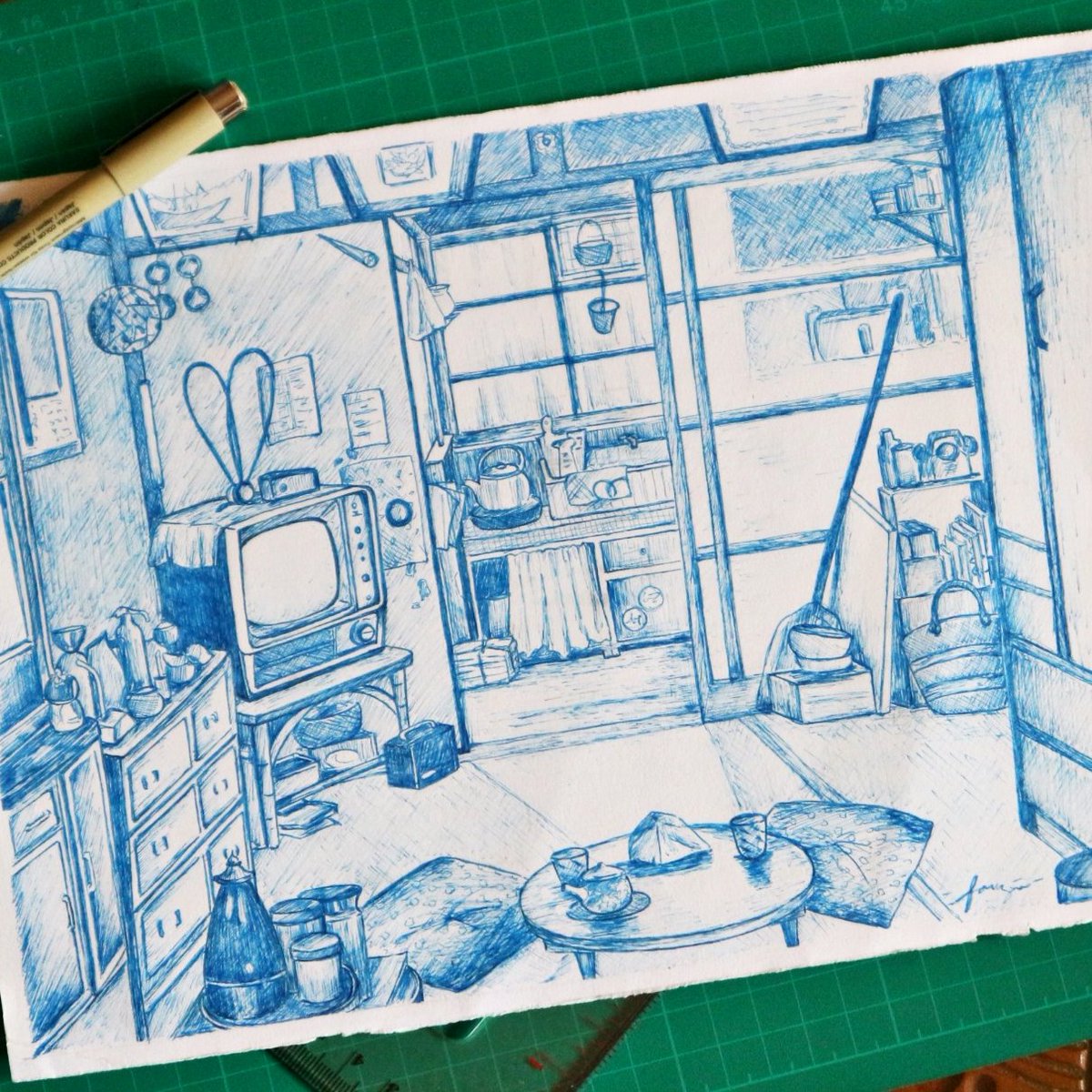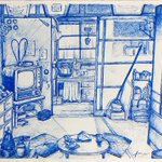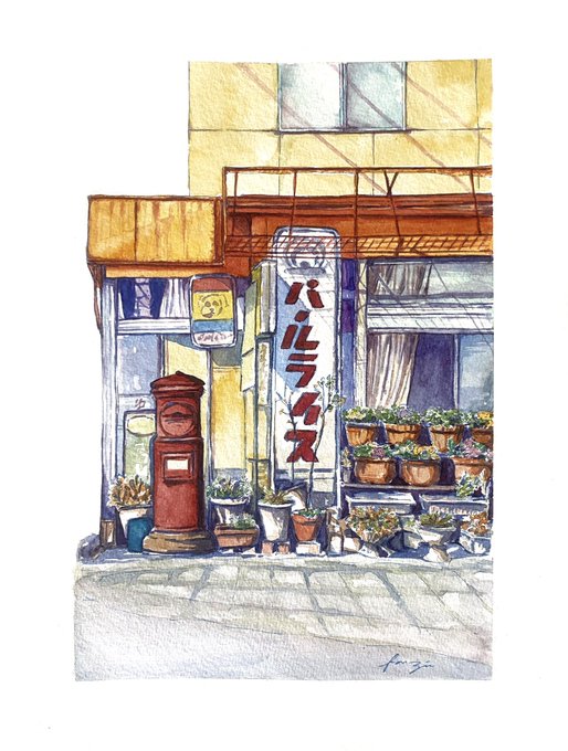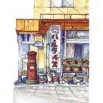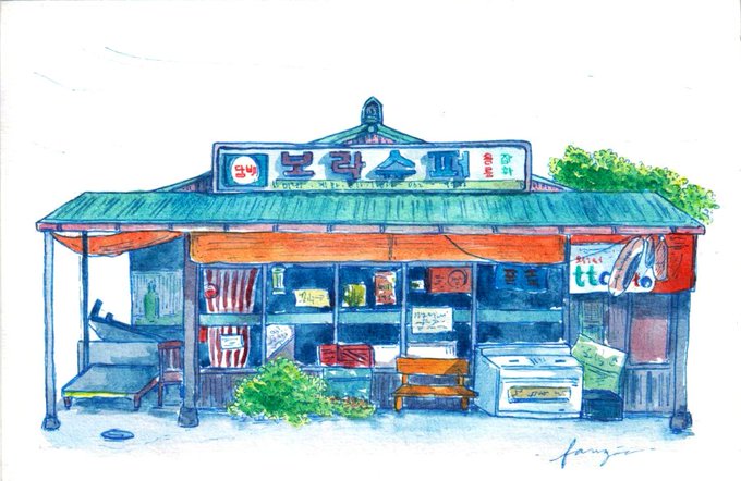 korean storefront again? why not?👀 dark blue🐳 #art #artists #artistsontwitter #watercolor #watercolorpainting