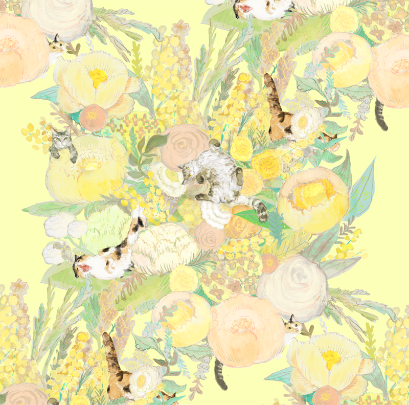先日ウエディング用に描かせていただいた猫と花柄。(かなり長いお付き合いのお友達でついった掲載快諾してくれた!友人の愛猫ズ)