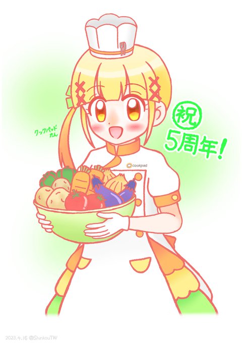 2023年3月20日はクックパッドたん(@cookpad_pr)の擬人化5周年記念日です。 記念日なので(?)、腰のリボン大きめのククたんを描きました。 「いっしょにお料理しましょう」 #3月20日はクックパッドたん擬人化5周年 #3月20日はクックパッドたんのバースデー #ククたん5周年 #ククたんアート