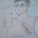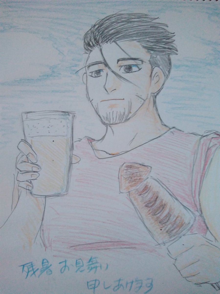 #ゴールデンカムイ版深夜の真剣お絵描き60分一本勝負 お題【夏の絵】 遅刻すみません! 空をいじくってたらワンドロじゃなくなりました… ビールはざっくりトレス。 飲みたい葛藤を込めました!笑