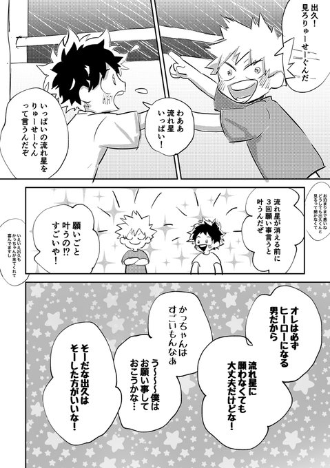 #出勝版ワンドロワンライ 運営さま、いつもありがとうございます😊 毎度遅刻で失礼します! お題「流れ星」 ※ショタ 流星群の観測ベスポジを知ってる💥ちゃん⭐️お祭りか何かをこっそり抜け出してきました🥰