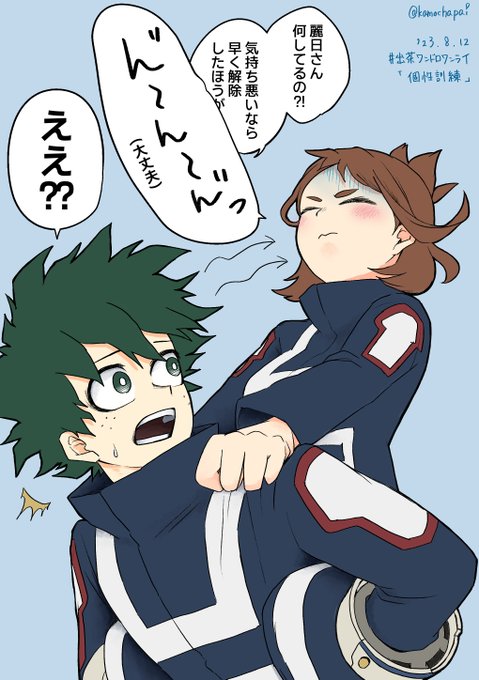 #出茶ワンドロワンライ @dechakai 第2回『 個性訓練 』 +1時間&大幅遅刻です💦 個性使いすぎて不安定になる茶 ↓ 安全に下まで連れて行く為おんぶする出 ↓ 出の背中に吐きたくなくて離れようと必死に抵抗する茶