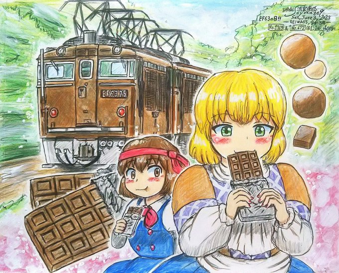 チョコレート色の小さな幸せ・大きな幸せ +60分 (2時間00分) #水橋パルスィ #深夜の真剣お絵描き60分一本勝負 (東方版・1769回目参加) #浅間伊佐美 #東方版もうひとつの深夜の真剣お絵描き60分一本勝負 (もうひとつ版・672回目参加) (※2022/5/18お題) #EF63 #EF63の日 #信越本線 #碓氷峠