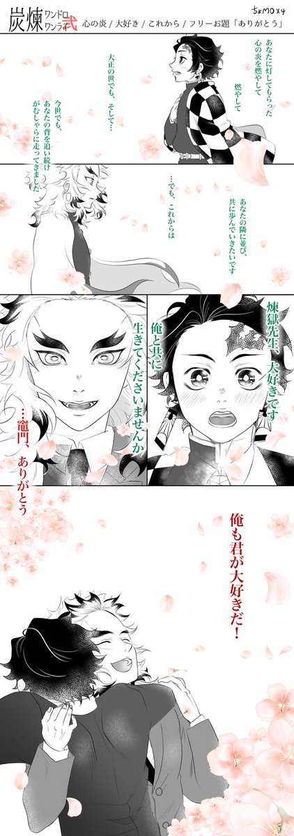 #炭煉ワンドロワンライ弐 @tnrn1hour_2 +1h45 m 「大好き」「これから」お借りしました。 毎週素敵な炭煉を拝見できてとても楽しい時間を過ごさせていただきました!主催様、本当にありごとうございます🙏✨主催様のこれからが充実したものになりますよう、陰ながら祈っております😌