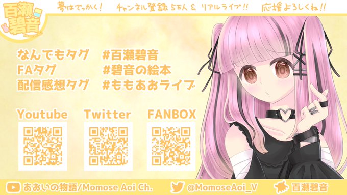 Youtube → youtube.com/@MomoseAoi marshmallow → marshmallow-qa.com/momoseaoi_v FANBOX → momose-aoi.fanbox.cc BOOTH → momoseaoi.booth.pm リンク・規約まとめ → lit.link/momoseaoi ファンマーク 🌸💙 なんでもタグ #百瀬碧音 FAタグ #碧音の絵本 配信感想タグ #ももあおライブ
