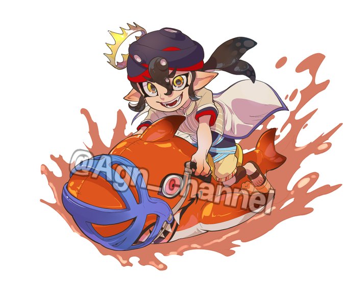 まなかし めかぶ(@ mozu_mekabu)さんに描いていただいたイカタコハーフのスプラグンエカ! 表情といいめっちゃよき~~!! 今後も、スプラ配信楽しんでやるぞ~~~!! #絵化アート #新人Vtuber #splatoon3
