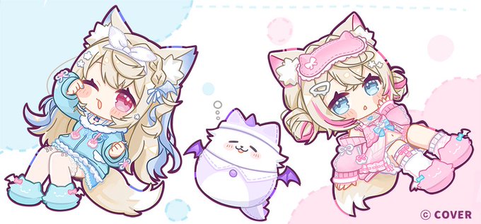 FUWAMOCO新衣装記念グッズの イラストを担当させていただきました!🐾 素敵な新衣装の記念グッズに関わらせていただき とても嬉しいです…!✨ ぜひチェックしてみてください!🩵🩷🐾💤 #FUWAMOCO #FWMCpajamas #FWMCpix hx.com/hololivetv/sta…