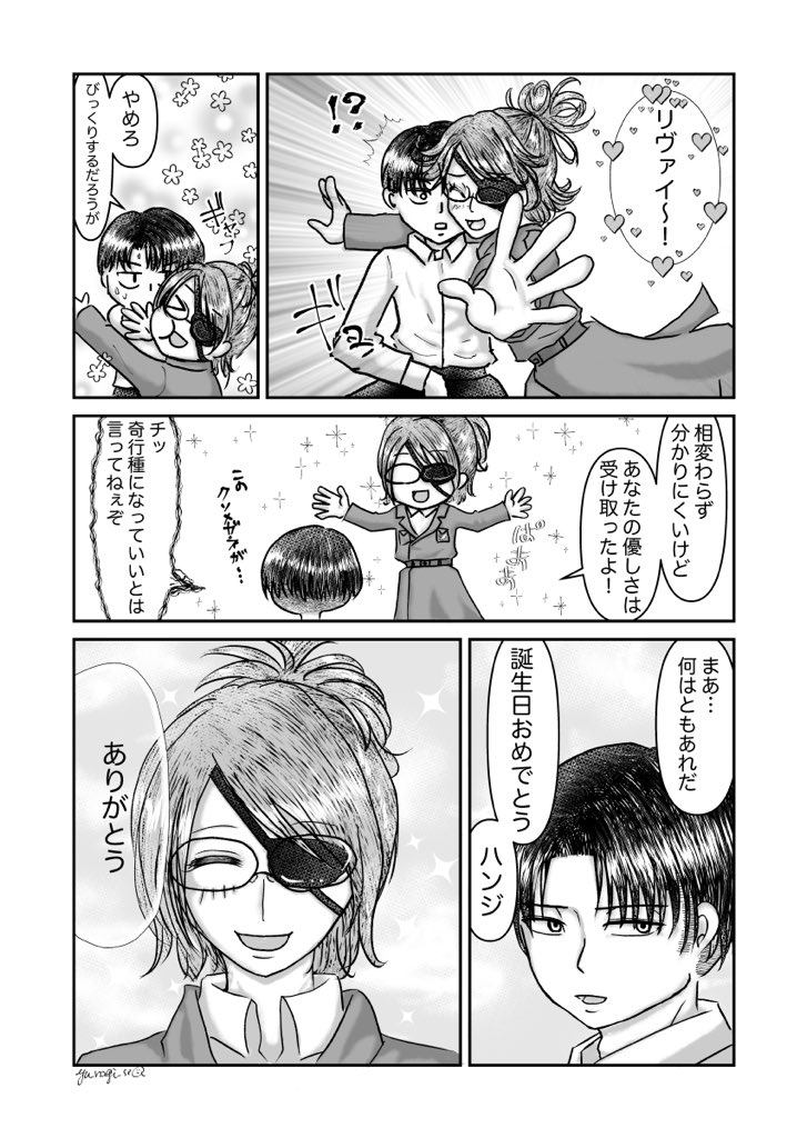 ハンジさんお誕生日おめでとうございます! 巨中のハンちゃんにプレゼントしたいものを詰め込みました ずっとずっと2人で仲良く過ごしていてください #クソメガネ生誕祭2021 #クソメガネ誕生祭2021