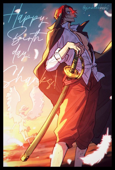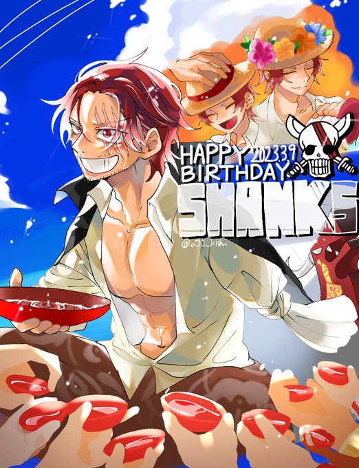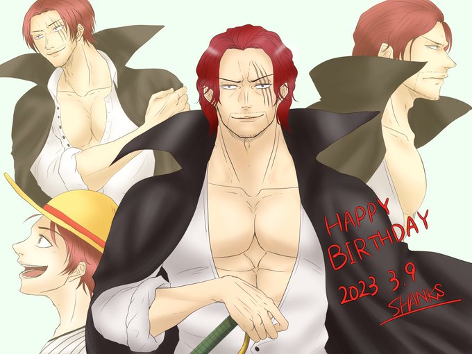 シャンクス誕生日おめでとう🎂🎉✨ずっと推してるのでこれからの活躍が楽しみ!今日一日みんなと呑んだくれてたらいいな…😊 #シャンクス誕生祭2023 #シャンクス生誕祭2023 #ワンピース #ONEPIECE #FILMRED #Onepiecefanart