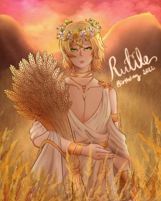 Happy birthday Rutile! He’s so radiant like the sun… I wanted to draw him like a harvest god with flowers and robes this year! 🌻🌼 #ルチル誕生祭2022 #ルチル生誕祭2022 #まほやく_FA