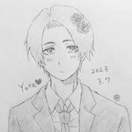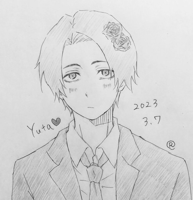 ゆーた、おめでとう🎉✨✨ ジャンプ表紙のネクタイなんとか結べてゆーじが持ってたバラ?をつけた! というイラストw #呪術廻戦 #乙骨憂太 #乙骨憂太誕生祭2023 #乙骨憂太生誕祭2023 #呪術廻戦ファンアート #イラスト #アナログ