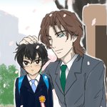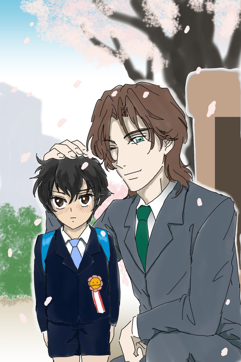 #刹那・F・セイエイ生誕祭2022 …なのに散々悩んで結局年齢操作パロ絵になりました💧 ロックオン生誕祭も刹那誕と一緒に祝う!と宣言したんでみなしご刹っちゃん引き取った保護者ロックオンと言う形で…刹那の小学校入学式と誕生日がちょうどかぶった的な感じです🌸