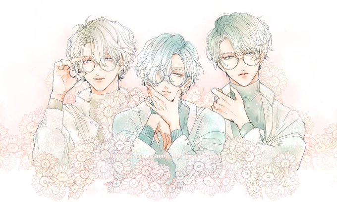 【春園の月】 春の装いで戯れに主役の真似をする二人 お祝い感はあまりないですが好きな三人を描いたのでこの絵でお祝いさせてください あの頃本当にどうしようもなくて似たような気持ちを抱えていた君にとても救われました ありがとう そしておめでとう #卯木千景誕生祭2022 #卯木千景生誕祭2022