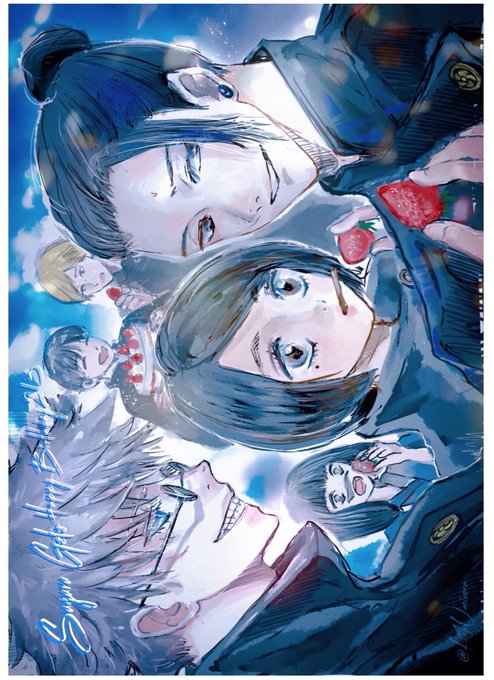 #夏油傑誕生祭2023 #夏油傑生誕祭2023 #jujutsukaisenfanart かなり遅れましたが傑誕生日おめでとう🎉 食べなよーと何故か悟と硝子に迫られる傑🍓 幸せにBirthdayしていた高専時代でありますように。