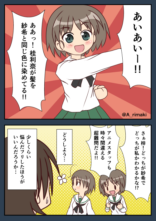 せっかくなのでもう少しあやちゃんを… あそこで審判と梓とあやとさおりんに風評被害があるのは…そう、大体俺のせいです…ええ (でも審判はともかく他は皆あそこの呟きを絵に起こしただけなんだ!だから無罪!) #大野あや生誕祭2023 #ガルパン #garupan