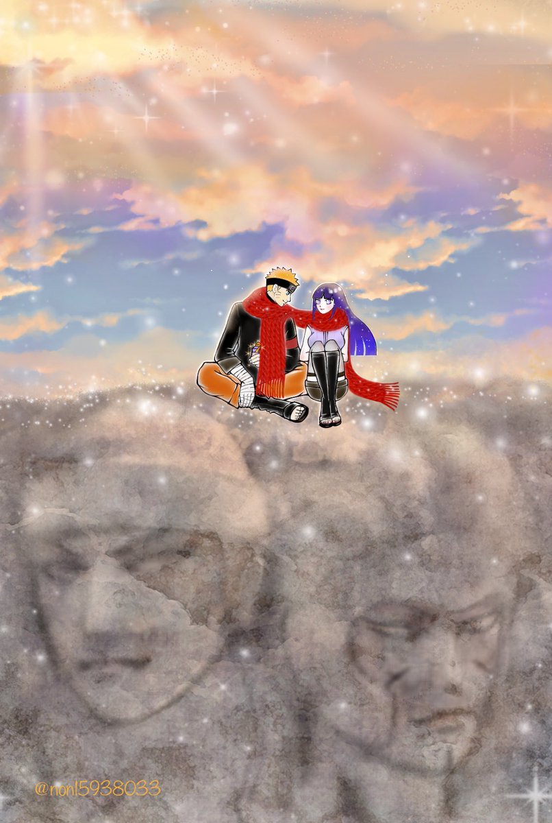 🦌六代目!火影岩に誰かいます 🍆どーせナルトがヒナタとイチャパラしてるんでしょ 🦌拡大してみます、わーナルトがプレゼント隠し持っているーめんどくせー 🍆あぁきっと指輪でしょ 俺の勘だと! (って妄想です) #日向ヒナタ誕生祭2021