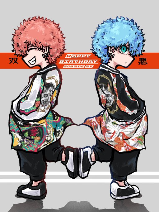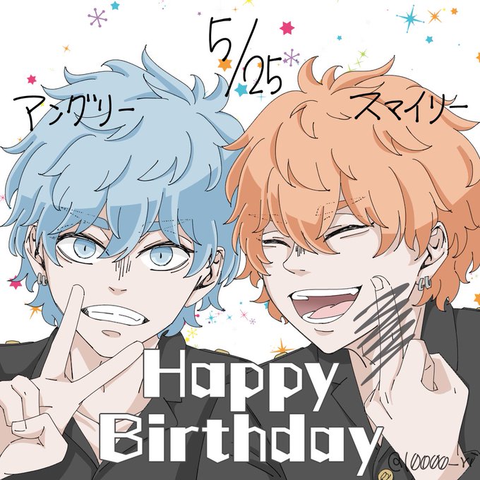大遅刻すみません!!😭 スマイリー、アングリー誕生日おめでとう!!🍜💙🧡 #双悪生誕祭2022 #河田ナホヤ誕生祭2022 #河田ソウヤ誕生祭2022 #東卍FA #イラスト #procreate