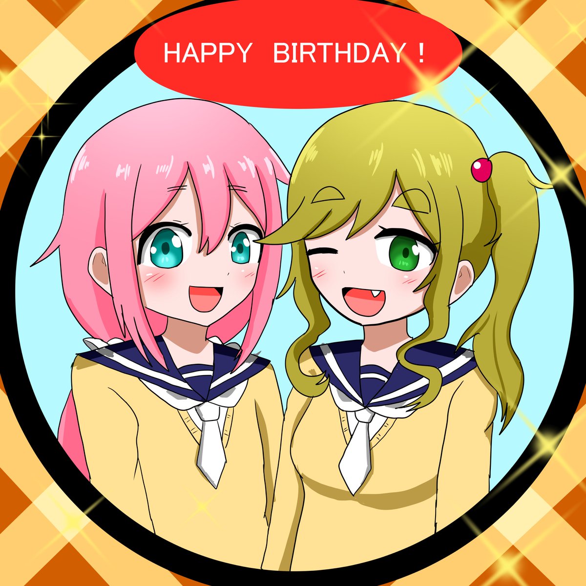 なでしこちゃん&あおいちゃん 🎉🎂Happy Birthday 🎂🎉 (´◔ᗜ◔)うそやで〜www #ゆるキャン #各務原なでしこ生誕祭2022 #犬山あおい生誕祭2022 #イラスト好きな人と繋がりたい