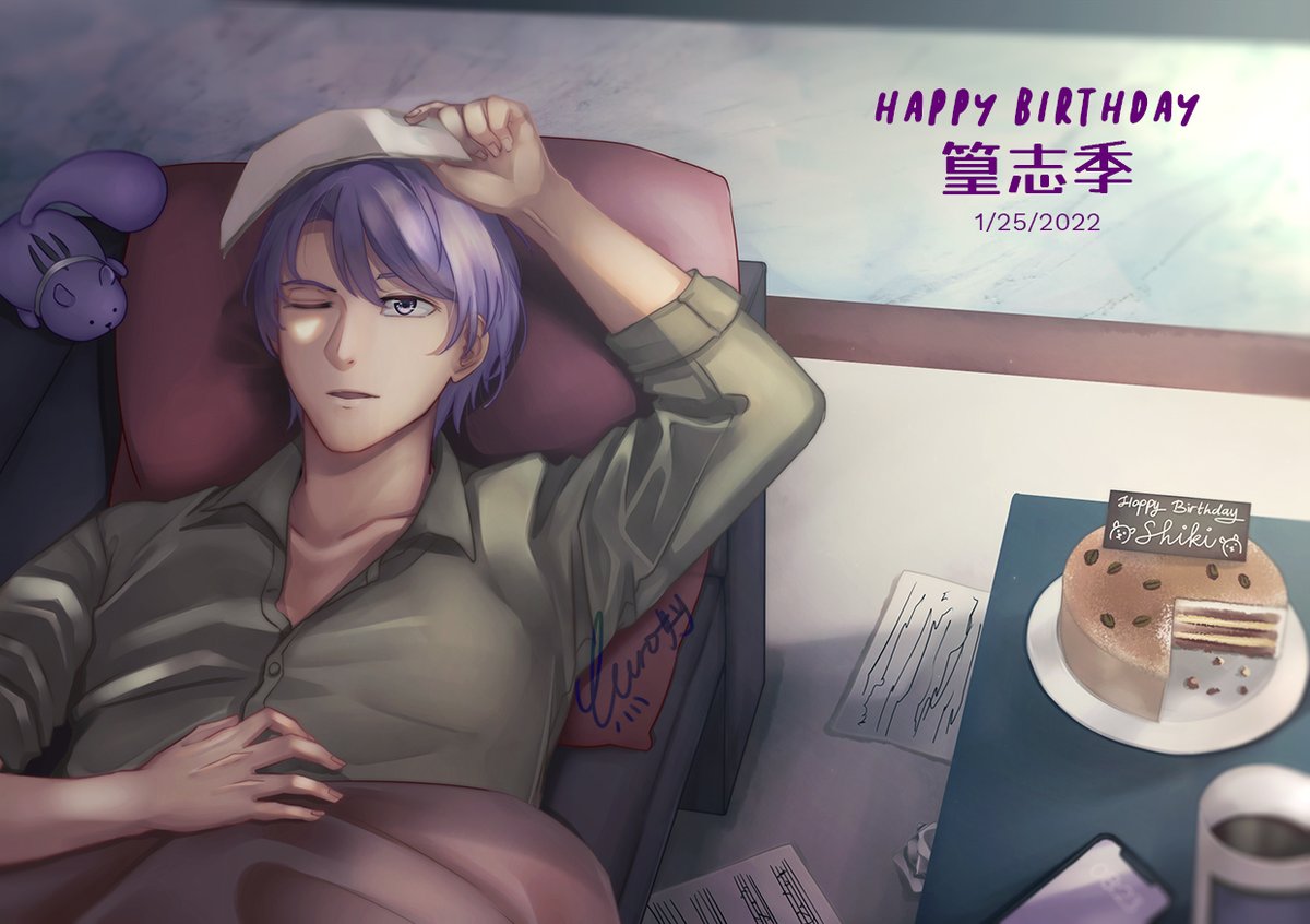 2022年1月25日 #一日一絵 1258日目の絵です #イラスト #篁志季誕生祭2022 #篁志季生誕祭2022 31歳の誕生日おめでとう! ・・・今日くらいは仕事はほどほどに。って周りがさせないだろうけどw アイスもほどほどに!寒いから #ツキプロ