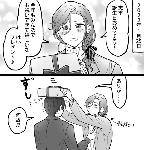 志季って『天才肌の変わり者だから友達がいない』(圭人君談・曲解)なのに愛が激重男に成長していて、きっと彼にとって信じられる確固たる愛をもらっていたんだろうなという妄想の珍しく真面目な漫画です。 生まれてきてくれてありがとう~~!!!!大好き!!!!!!!! #篁志季生誕祭2022