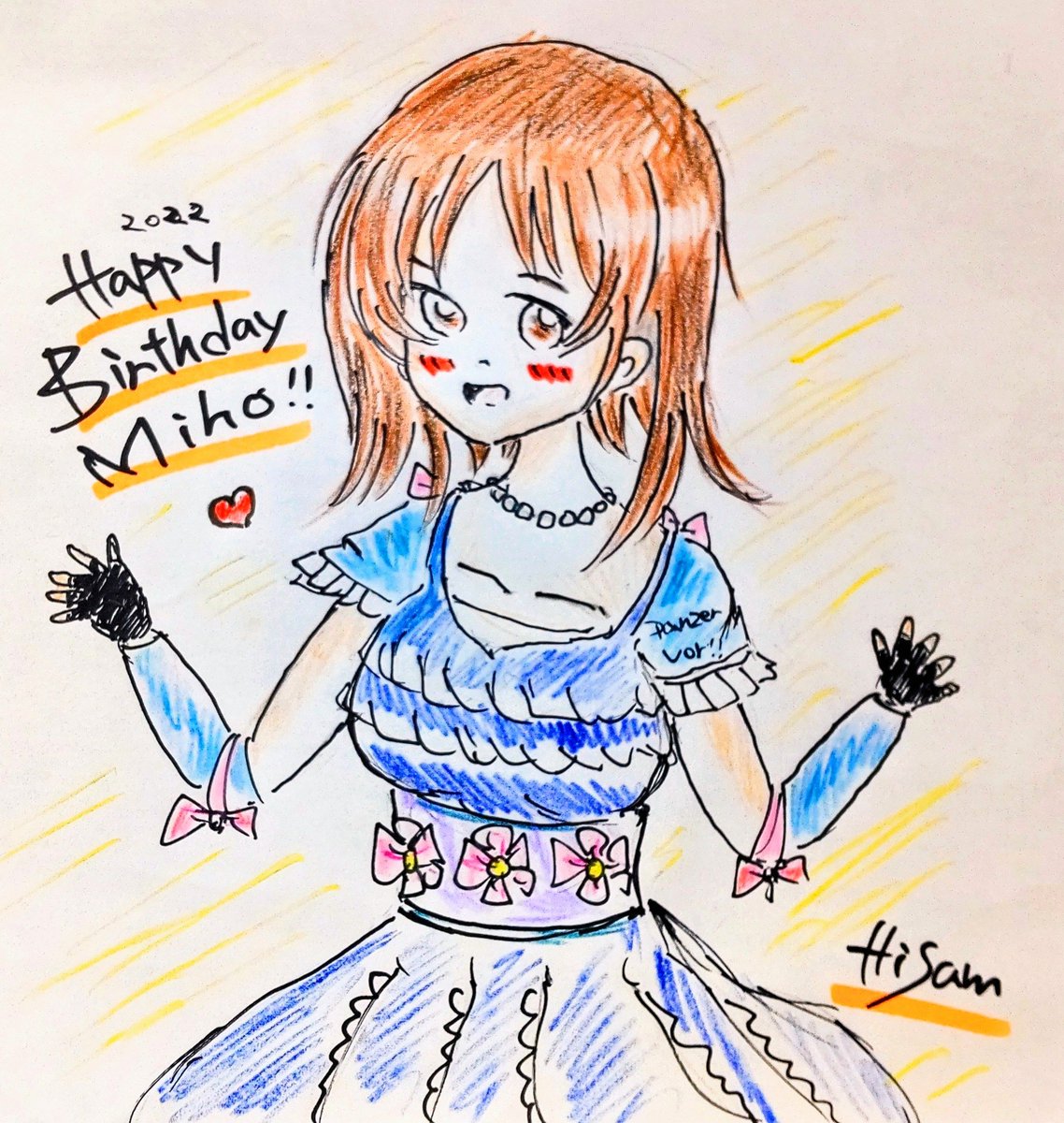 過去絵になりますが、みぽりんお誕生日おめでとう🎂🎉 去年、大洗シーサイドホテルさんと坂本文具店さんに寄贈させて頂いたのは、とても良い思い出です。 ガルパンに、大洗に出会えて本当に良かった。 10周年も、パンツァー・フォー!! #西住みほ誕生祭2022 #西住みほ生誕祭