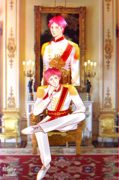 𝐛𝐨𝐰 𝐝𝐨𝐰𝐧 𝐭𝐨 𝐭𝐡𝐞 𝐤𝐢𝐧𝐠. happy seijuro day! ✨ this is the design of the postcard that’ll be included in the cupsleeve’s aftersale! thank you, as always, to @starlinart for this amazing seijuro in a royal outfit art ❤️ #赤司征十郎生誕祭2021 #赤司征十郎誕生祭2021
