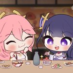 eimiko give each other a birthday present 🎁👁️👁️ [read L-> R] hbd ei ⚡️ and early bday for yae miko! 🦊🌸 #原神 #genshinimpact #RaidenEi #YaeMiko #八重神子生誕祭2022 #雷電将軍誕生祭2022