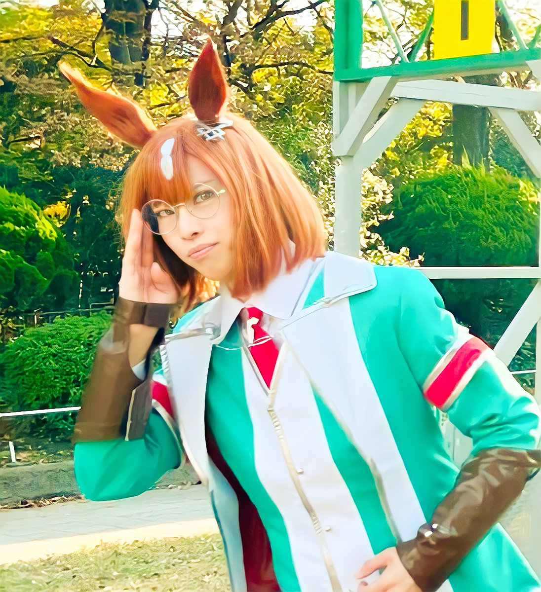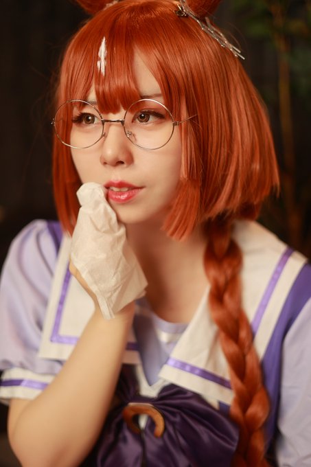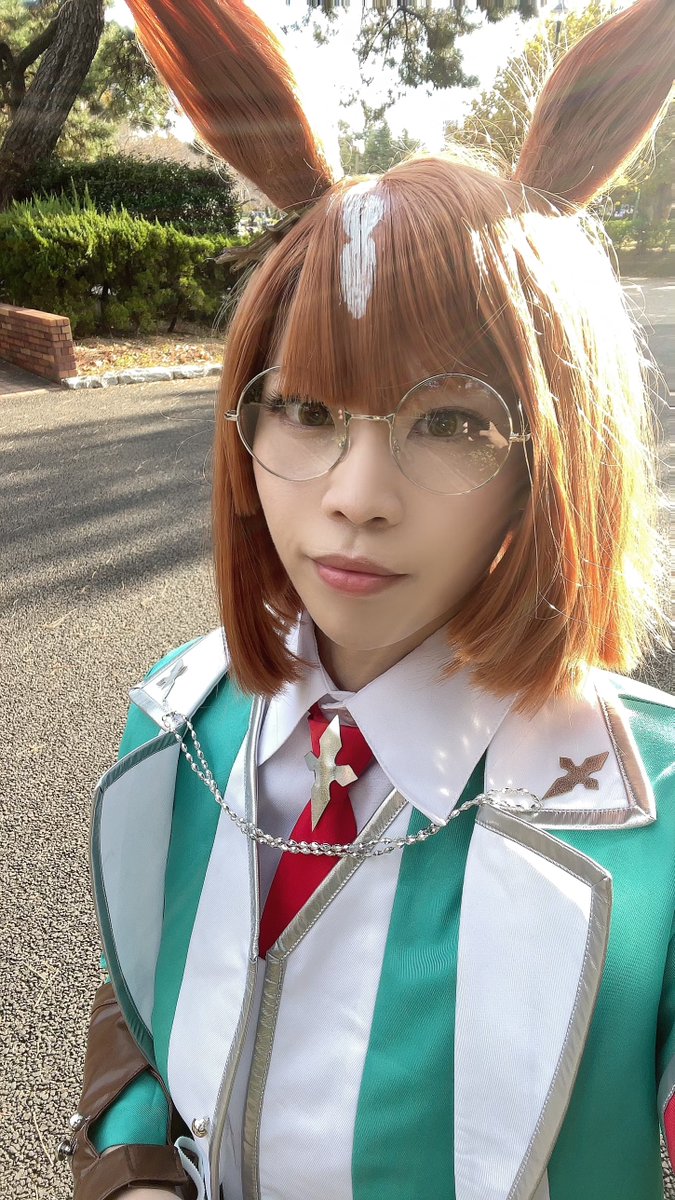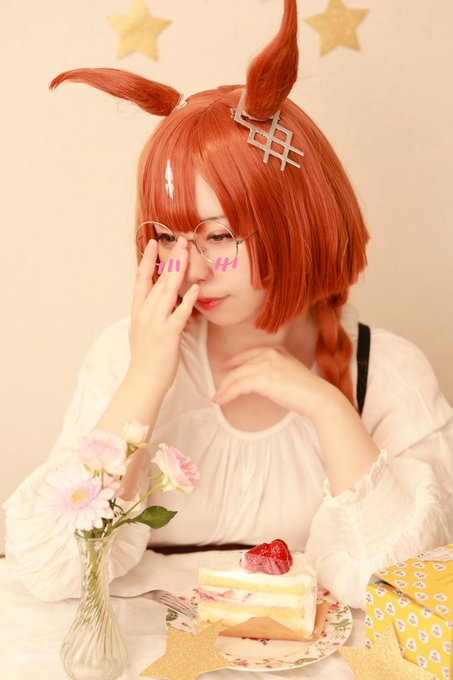 【cosplay】 イクノディクタス お祝いされて照れ……からのカメラ目線👓✨ 後ろの星はカノープスをイメージして貼りました☆ #ウマ娘になってしまいました #イクノディクタス生誕祭2022