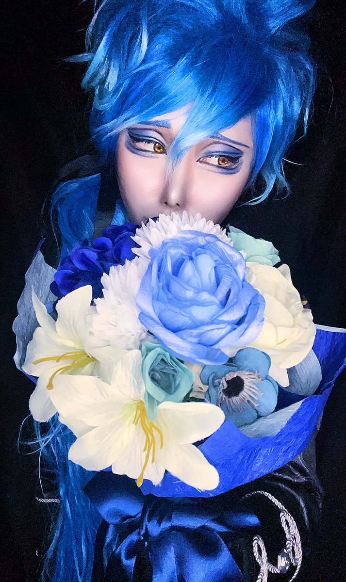 ※コスプレ/cosplay 婿イデ ⚠︎花束捏造・カラコン加工 #イデア・シュラウド誕生祭2021 #イデア・シュラウド生誕祭2021 おめでとう💀💙 これからも大好きな貴方のコスをさせていただきたいです…