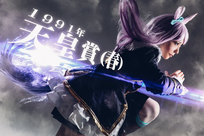 ギリギリセーフ! ユメヲカケルのあのシーンを切り取ってもらいました……🎤💜 マックちゃんのビジュアルに惚れて コスプレしたい!と思ってこの界隈に戻ってきました。ありがとう🥹♥️♥️ #メジロマックイーン生誕祭2023