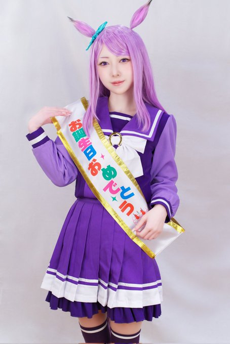 #cosplay マックちゃんお誕生日おめでとう🎂💜 メジロの誇りを胸に走り抜くあなたが大好き……!!今日はトレーナーがいっぱいケーキ食べさせてあげる🥹💖 これからもコスプレさせてください🫶 📸:@D85010 #メジロマックイーン生誕祭2023 #メジロマックイーン誕生祭2023
