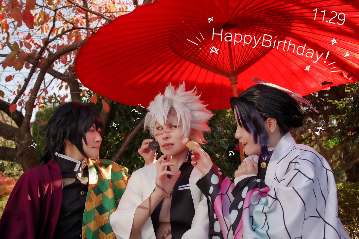 #不死川実弥生誕祭2022 #不死川実弥誕生祭2022 お兄様!🍃お誕生日おめでとうございます🥳🎉 今年はお祝いできてよかった🎂 大好き!💖 胡蝶しのぶ @kumako_e 冨岡義勇 @Age8aaaaR 不死川実弥 @rio_tarou Photo @excelia01 #cosplay