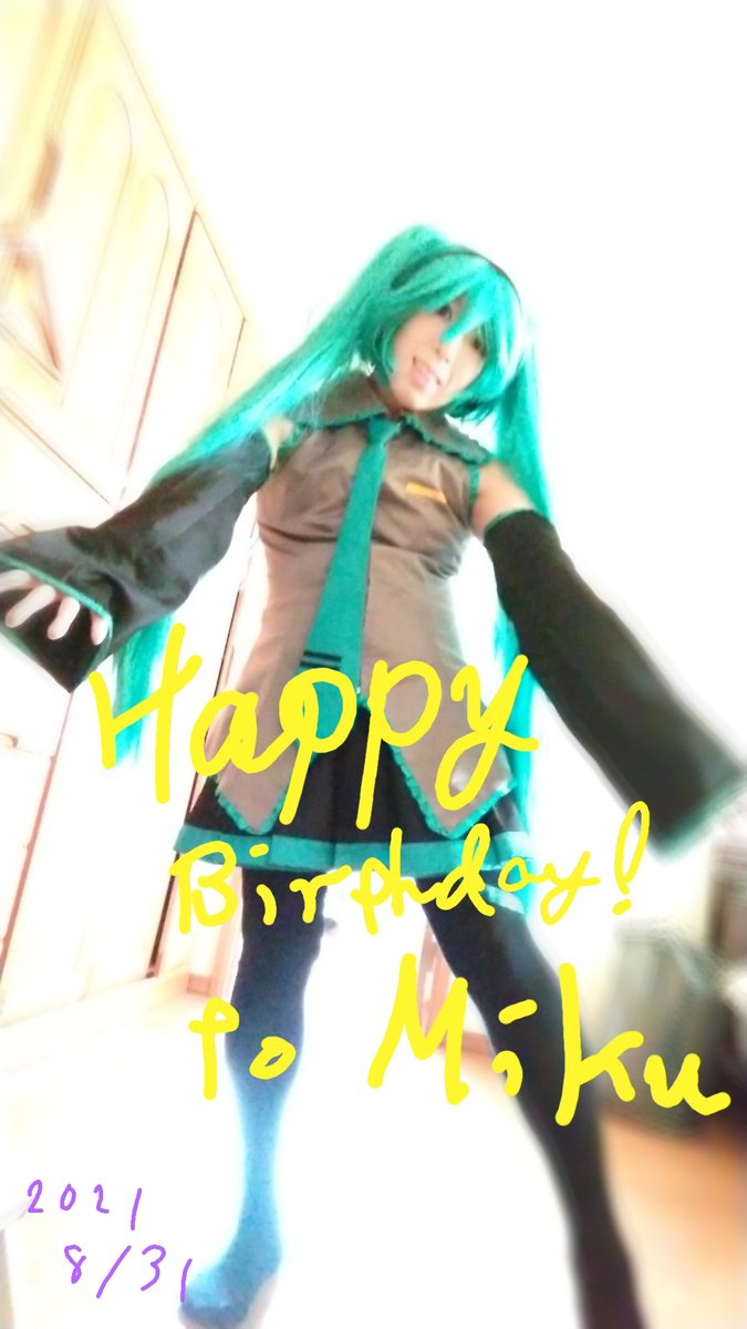 出遅れたけど、ミクちゃん はっぴーばーすでー! 準備が間に合わなかったので、今年は簡単に作った画像で失礼します これからも、コスプレ等でミクちゃんを愛していきます♪ #初音ミク生誕祭2021