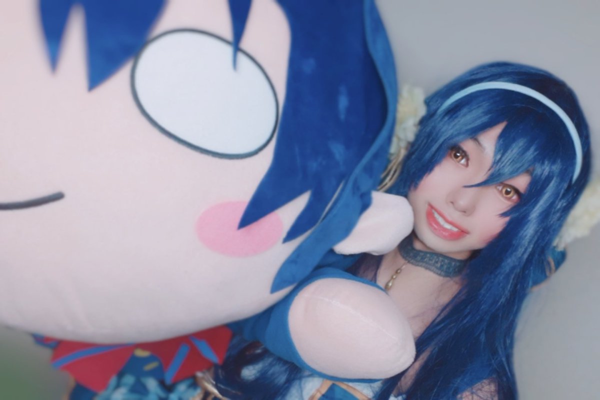 ~テラジャンボ寝そべり海未ちゃんと2ショットコスプレシリーズ~ これからもテラジャンボ海未ちゃんを愛でていきたい!!大切にする!! #cosplay #園田海未誕生祭2023 #園田海未生誕祭2023