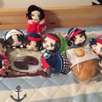 #山田二郎誕生祭2022 うちのじろちゃんを代表して…じろぬいともちじろーズにケーキを進呈します😌 2️⃣「やったぜ!チョコロールケーキじゃん!!」 🐶「しゅーくりーむ」 🧢「オイシソウ」 みんなで分けて食べるんだよ☺️ 改めてじろ誕生日おめでとう㊗️