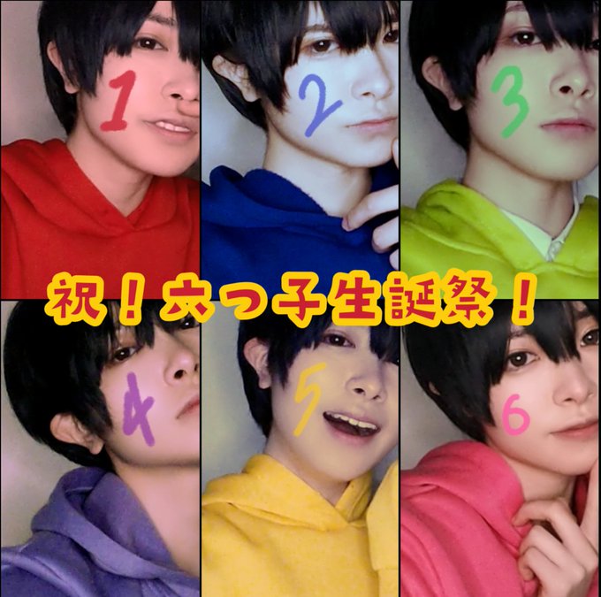 #松野家6つ子生誕祭2023 #六つ子が生まれたよ おめでとう!!!筋肉松の六つ子が生まれたよ〜が自然と流れてくる脳内www 過去コス写真ですが・・・ 今年もお祝いできてよかった!🎂❤️💙💚💜💛🩷🎂