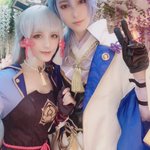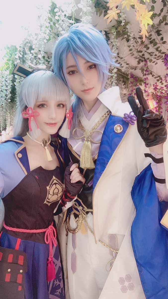 先週東京遠征で神里兄妹やってきたときの✨ 綾華🎂なのでいいかげん速報するw くくさんのお兄様がほんとイケメンだった拝んだ🥺毎度リアル身長差... この日スタジオが落雷で停電して。更衣室で「将軍様落ち着いて下さい」言うてた私らw #原神コスプレ #神里綾華生誕祭2022
