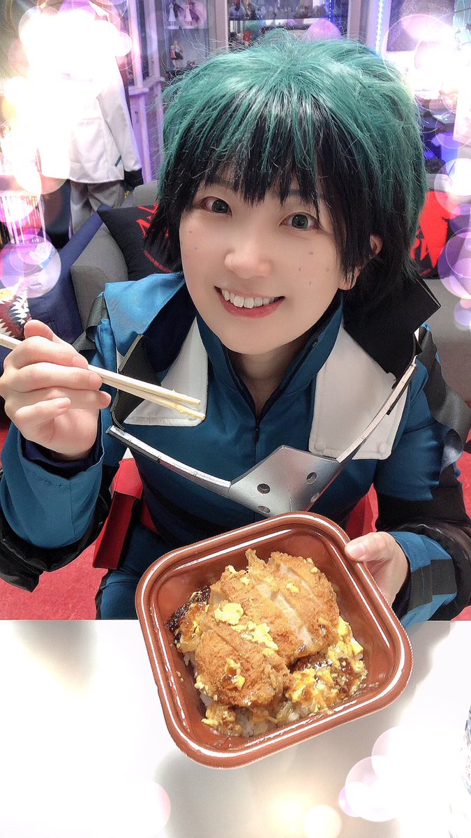 相澤先生が買ってきたカツ丼、ひと口食べていいよって言うから、真ん中の一番大きくて美味しいカツをひと口で食った図❤️ ありがとう〜おいしかったw #緑谷出久誕生祭2022 #緑谷出久生誕祭2022