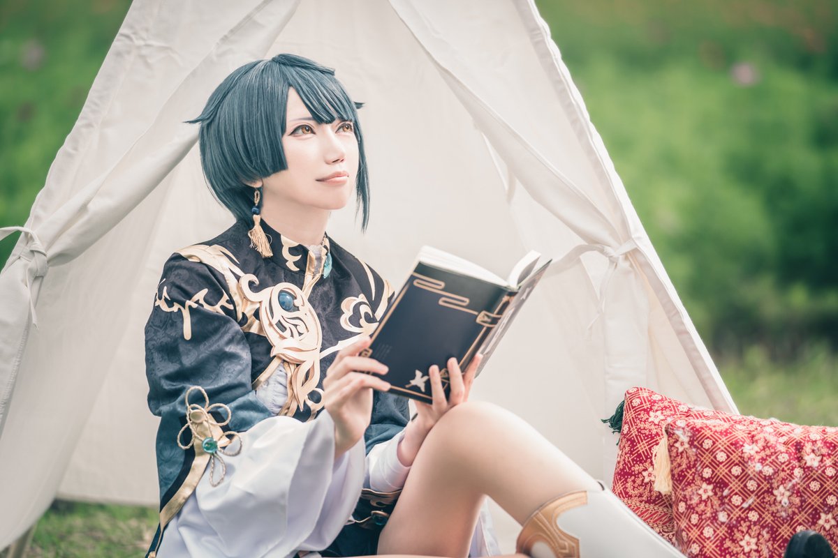 cosplay / 原神 / 行秋 行秋くん誕生日おめでとう🎂🎊 この前のお写真+α並べたらほぼ本読んでた😊笑 星5片手剣きたから最近よく使うよ有難う坊ちゃま😘🎶 Photo : じーじさん #行秋誕生祭2021 #行秋生誕祭2021 #Xingqiu