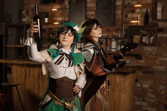 З днем народження,Чжунлі || Happy birthday, our dear Zhongli. Childe has arranged a table in your favorite restaurant 💧#Tartaglia @NolaHimmelCos 🔶#ZhongLi @Sinitsa_cos ph: Kyoosh @UAGenshinImpact #Genshinlmpact #原神 #childexzhongli #chili #tartali #タル鍾 #鍾離生誕祭2022