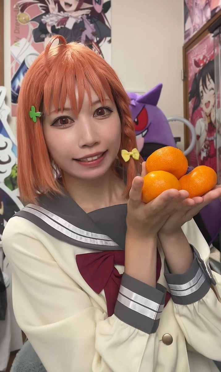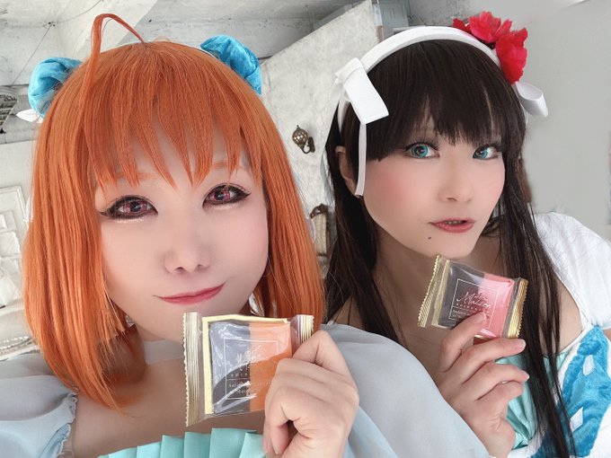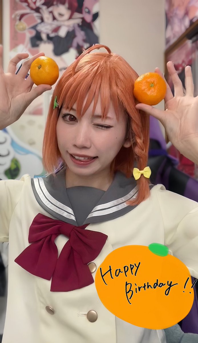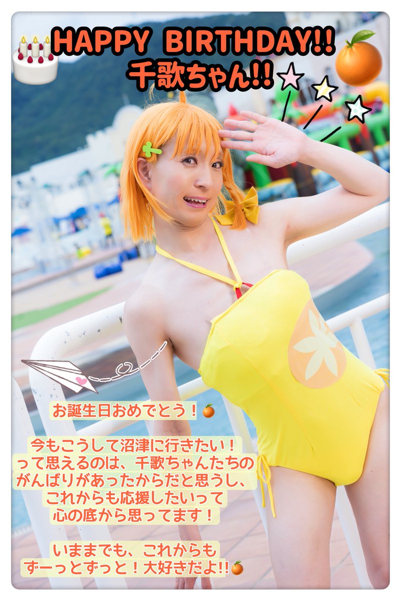 cosplay 千歌ちゃんお誕生日おめでとう🎊 元気な千歌ちゃん大好き! 幻日のチカちゃんのお衣装つくるからねー!まっててねー!🍊😆✨ WBNWあわせよりあみこ千歌ちゃんとのツーショ!🍊☺️♦️ #高海千歌誕生祭2023