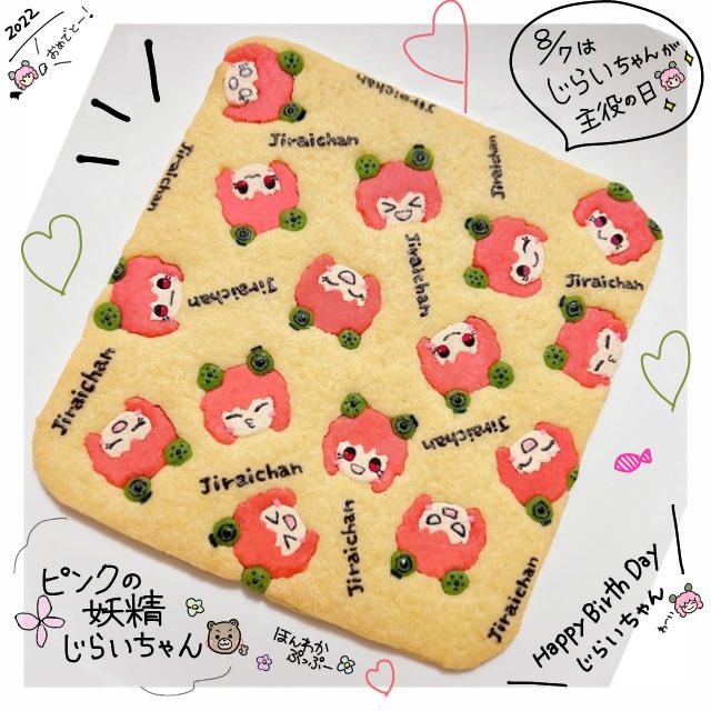 じらいちゃんお誕生日おめでとうございます!🎉 みんなから愛されてて場の空気をやわらかーくしてくれる盛り上げ上手なピンクの妖精じらいちゃん🐻💖 今年も幸せい〜っぱいな一年になりますように🙏✨ 💟デザインクッキープレート (じらいちゃんver.) #bintrollFA #じらいちゃん誕生祭2022